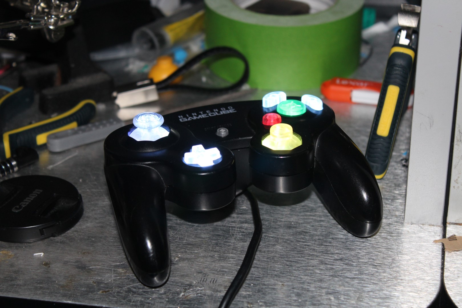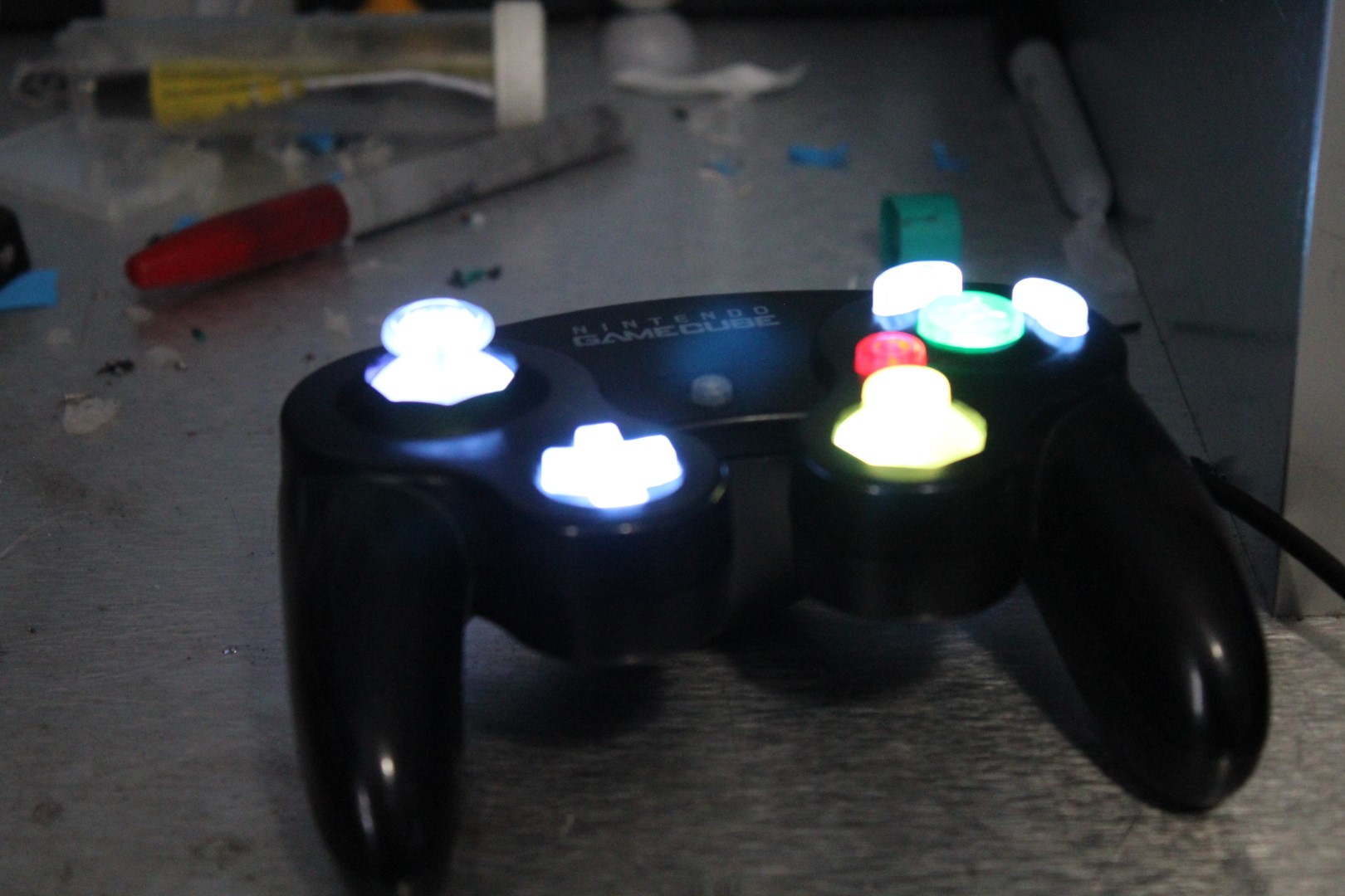 A simple mod to a Gamecube controller, keeping the original colour scheme while adding a unique look to the device