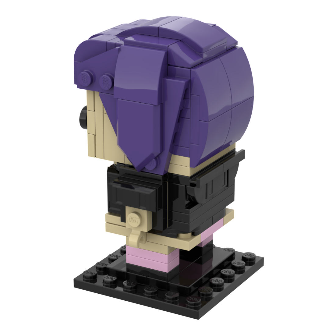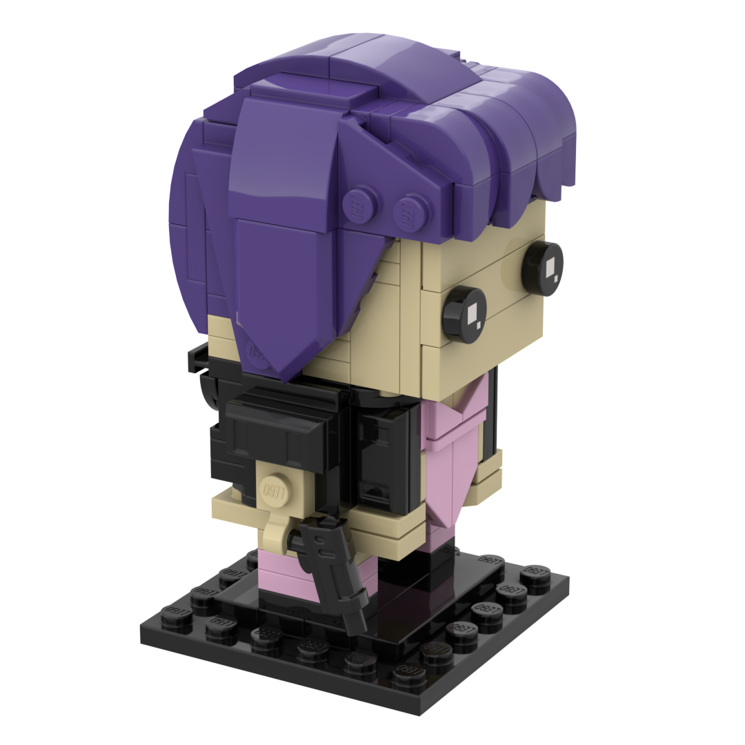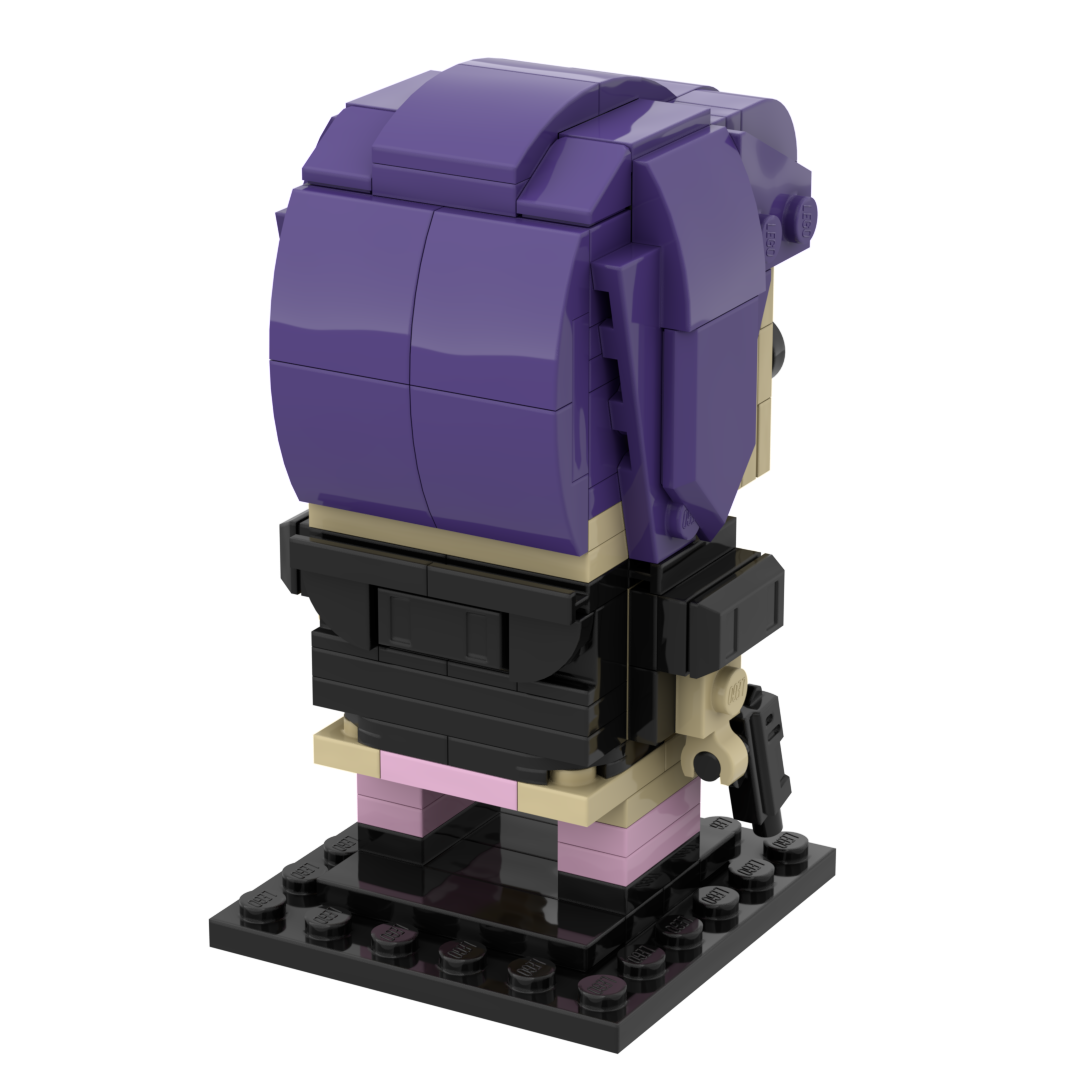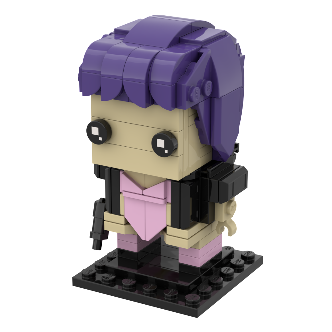 I've seen a few iterations of Major Motoko online, but they're all odd in one way or another. I really hate when people use the round dome piece for Brickheadz, so I decided to tackle the iconic Stand Alone Complex look of the Major. This version is specifically based on her look in Season 1, as I think that is more iconic than the Season 2 clothes. The iconic pink clothing and black jacket was really difficult to capture properly, but I'm really proud with how it turned out, it captures Major Motoko perfectly. The hair was also fairly difficult to get the shaping looking good, but I landed on this design, and I'm pretty happy with how it turned out. She wields just a fairly simple sci-fi pistol. Feel free to swap it out, but as she's arguably the most important character in Section 9, she's given a weapon.